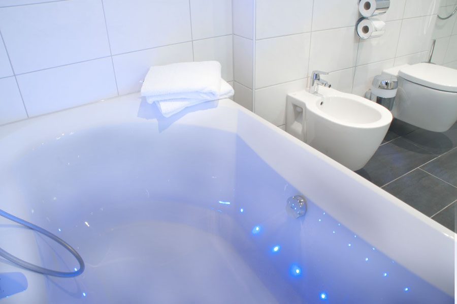 In allen Details der modern eingerichteten Zimmer spiegelt sich der Anspruch an Design und Komfort. Für höchsten Schlafgenuss sorgen das 2,0 m breite King Size Bett. Das großzügige Badezimmer verfügt über eine Badewanne.